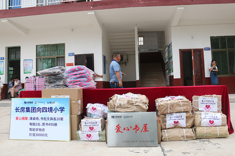 隨后,進行了溫馨隆重的捐贈儀式。四境小學(xué)楊林校長接過捐贈牌露出了憨厚開心的笑容,孩子們更是喜笑顏開,對新書包和文具愛不釋手。450本兒童書籍和15套點讀機豐富了“愛心書屋”的藏書和設(shè)施,也傳遞著長房集團對鄉(xiāng)村孩子們濃濃的愛意。